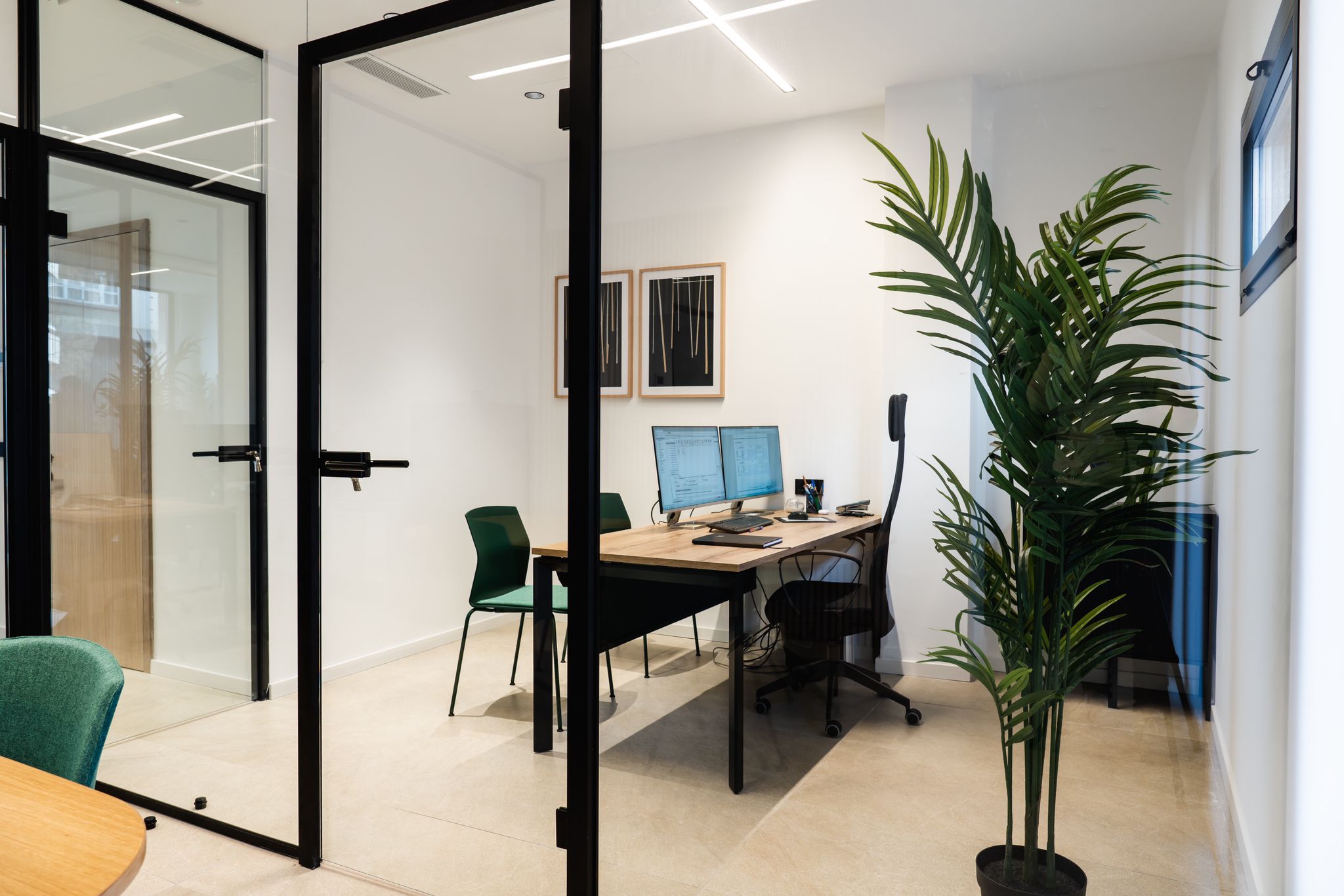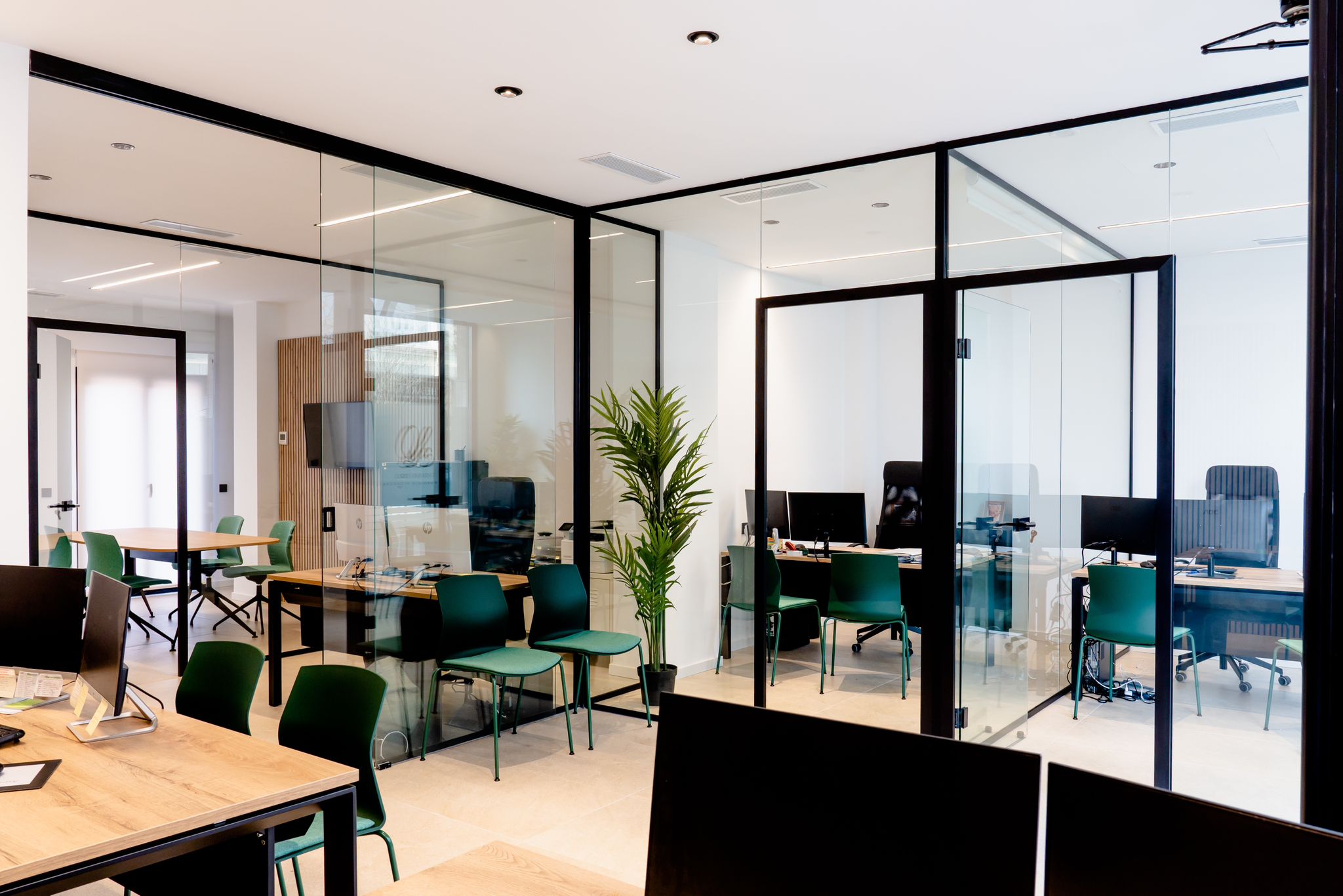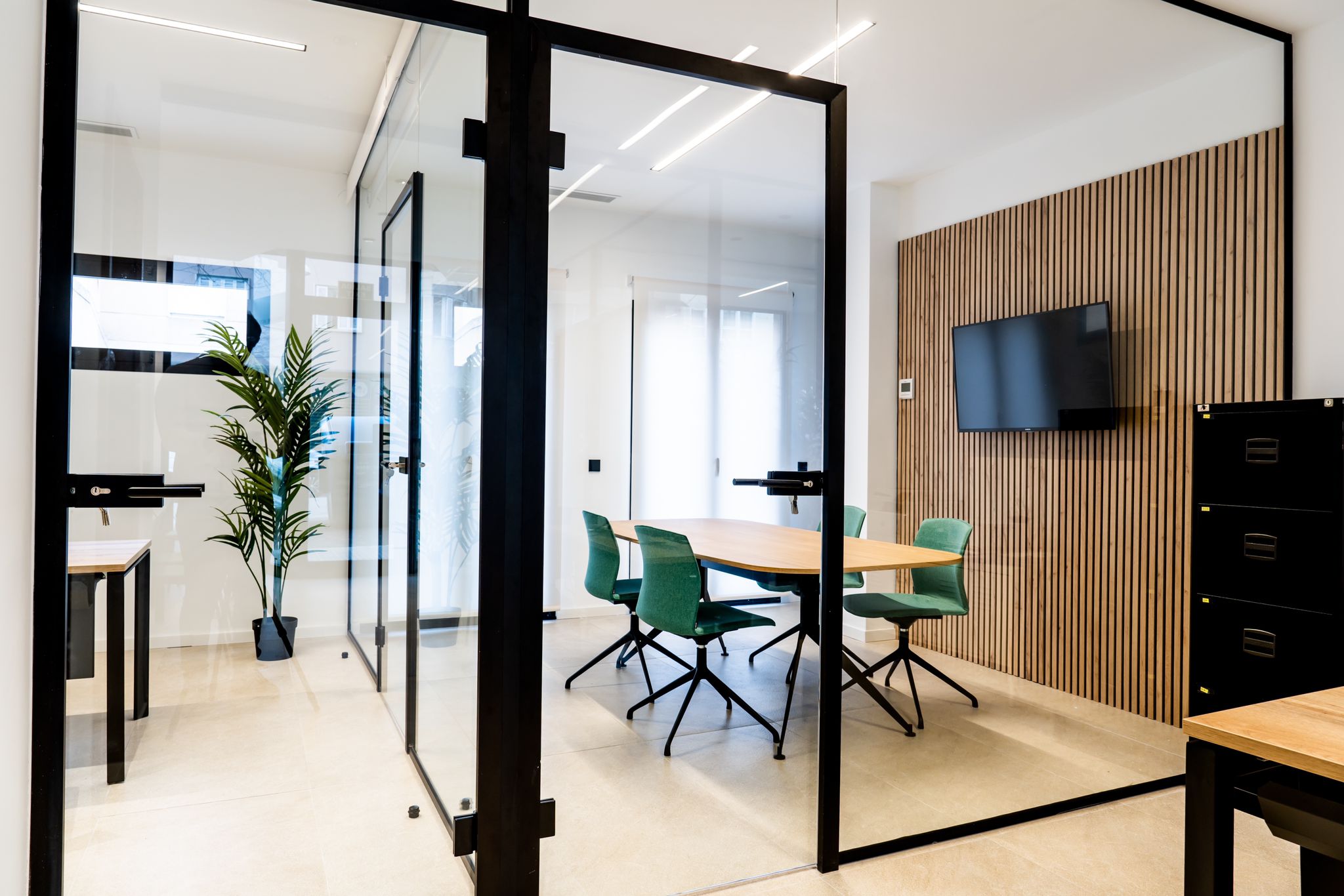Este proyecto reforma un local comercial para servicios jurídicos, maximizando la luminosidad con particiones de cristal que crean una sensación de amplitud.